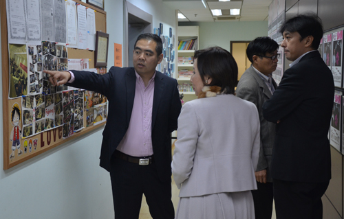 商谈结束后马校长带嶋根老师一行参观介绍学校